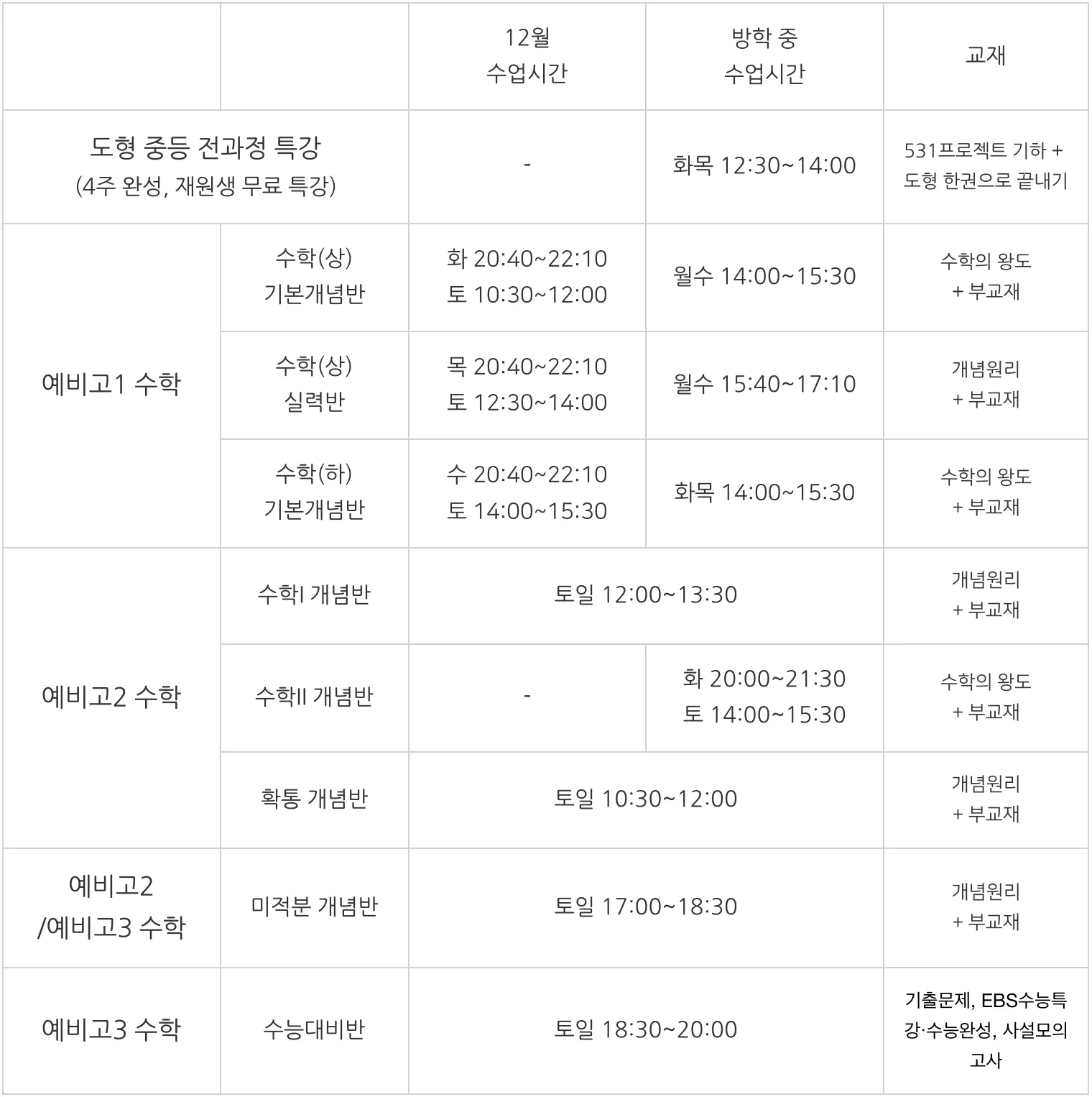 - 예비 고1은 3월부터 진도 수업은 주말에 진행합니다.